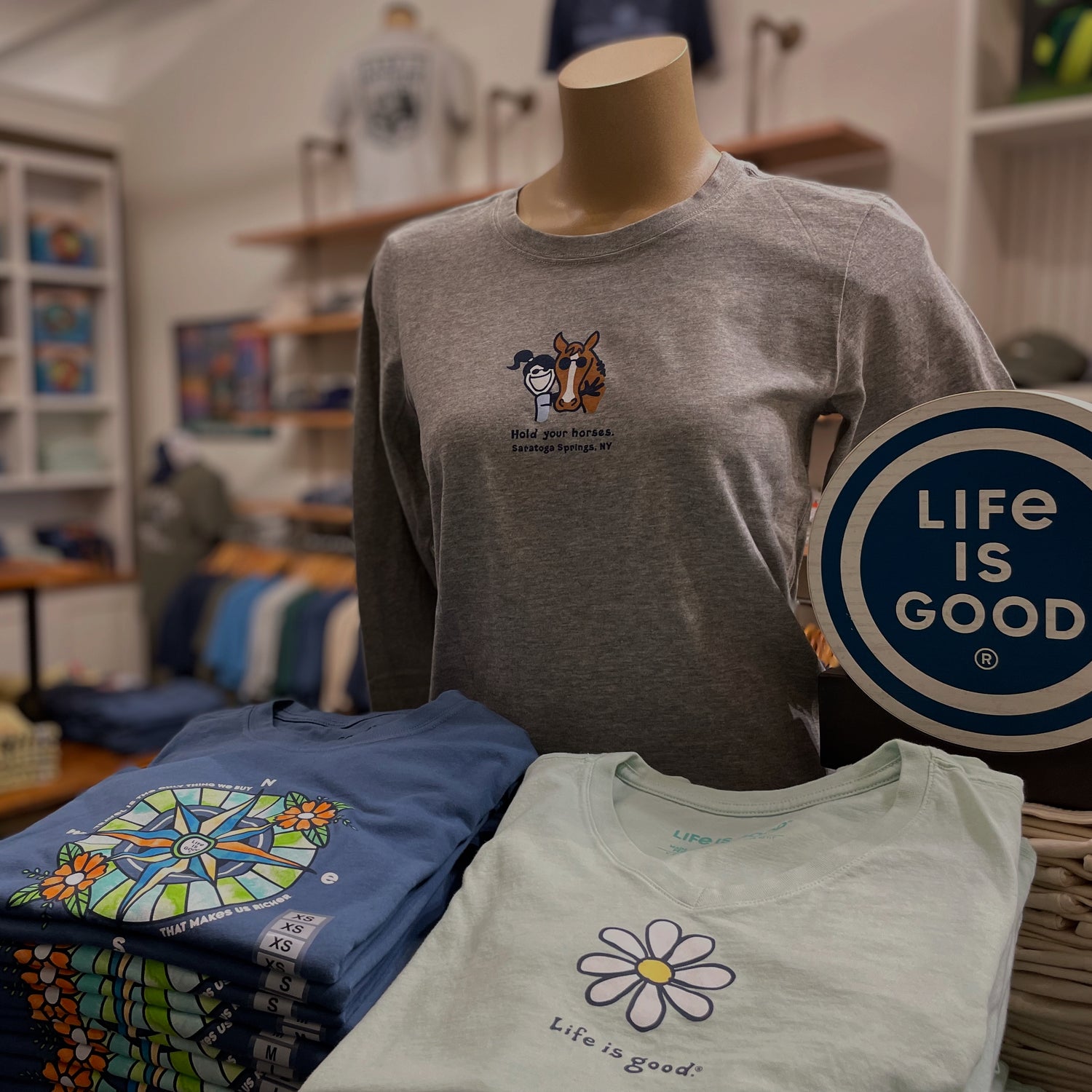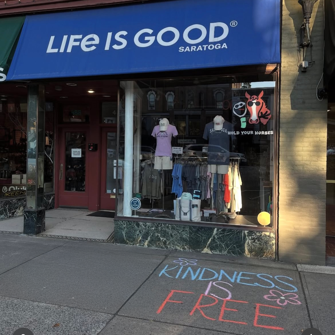 Life is Good Saratoga is a locally owned and operated Life is Good store located at 486 Broadway in downtown Saratoga Springs. It is a sister store to Saratoga Outdoors, conveniently located right next door!